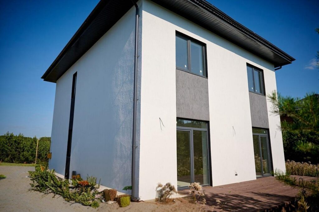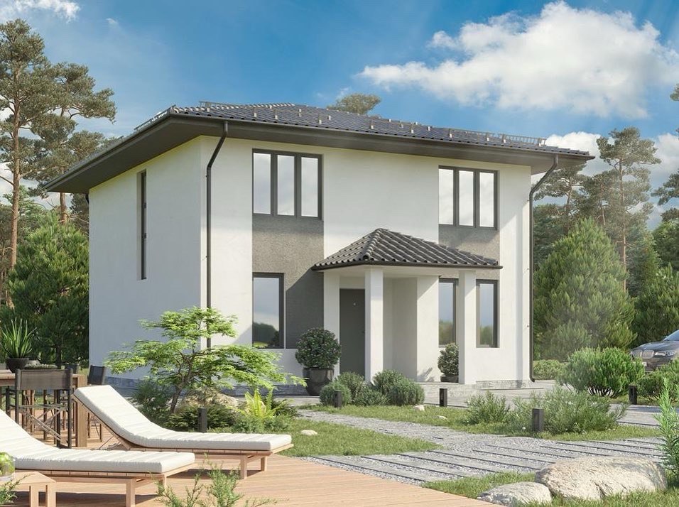 Для фасадов используется премиальная штукатурка. Такой вариант фасада легко мыть, он не царапается и не выгорает.